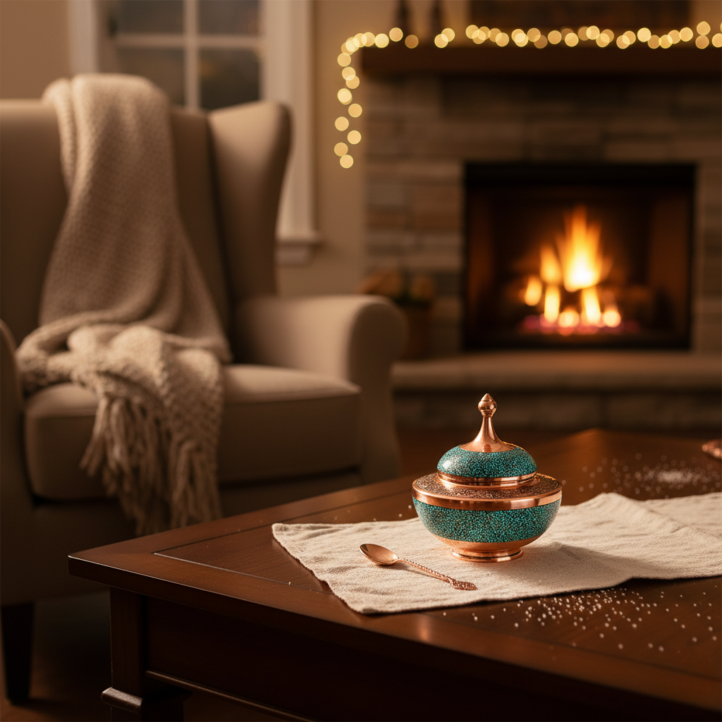 The Turquoise Saljughi Sugar Bowl L features a refined design with a vibrant turquoise glaze, adding a touch of elegance to your tabletop. Its generous size provides ample capacity for sugar storage, while the secure lid helps maintain freshness. Crafted with durable materials, this bowl combines aesthetic appeal with practical use for both everyday and formal settings.